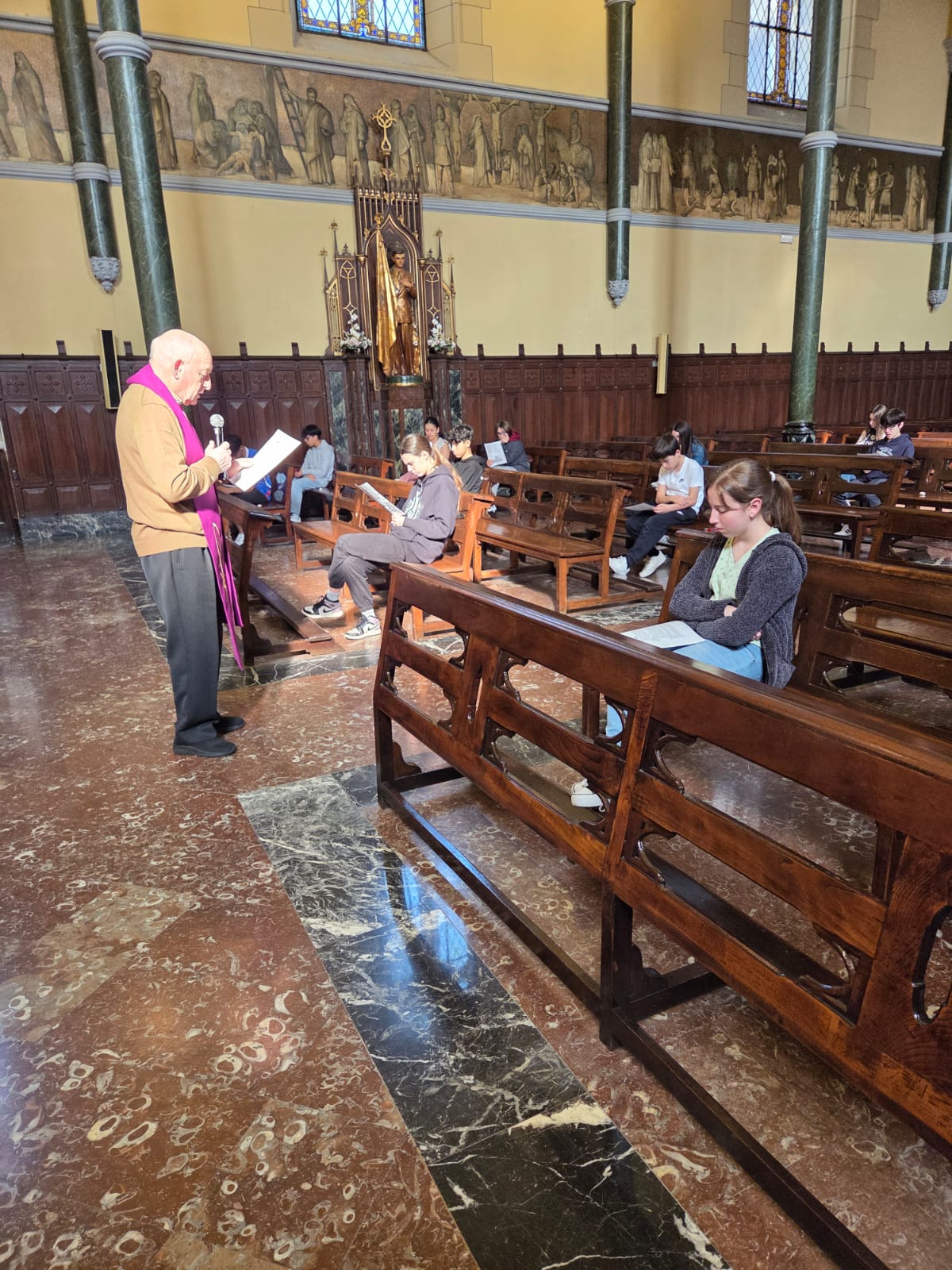 Azkeneko asteetan ikasleek parte hartu dute aitortzetan. Aste Santua hurbiltzen ari denez, ikasleei otoitz une berezia eskaini diegu. Ospakizun horretan Jainkoaren barkamena jaso dute eta egindako otoitzak eta isiltasunak lagundu diete barnetik azterketa sakona egiteko.