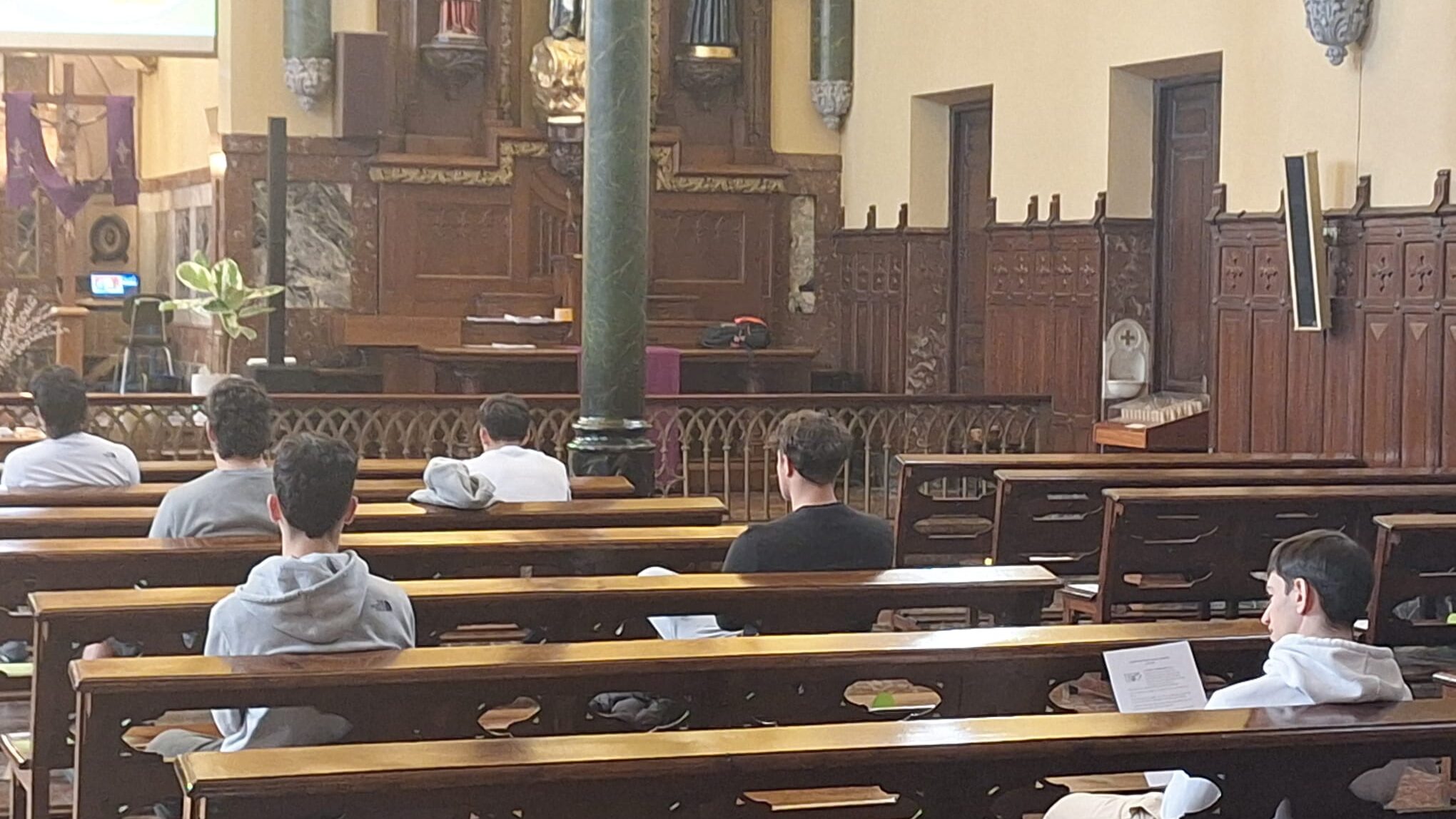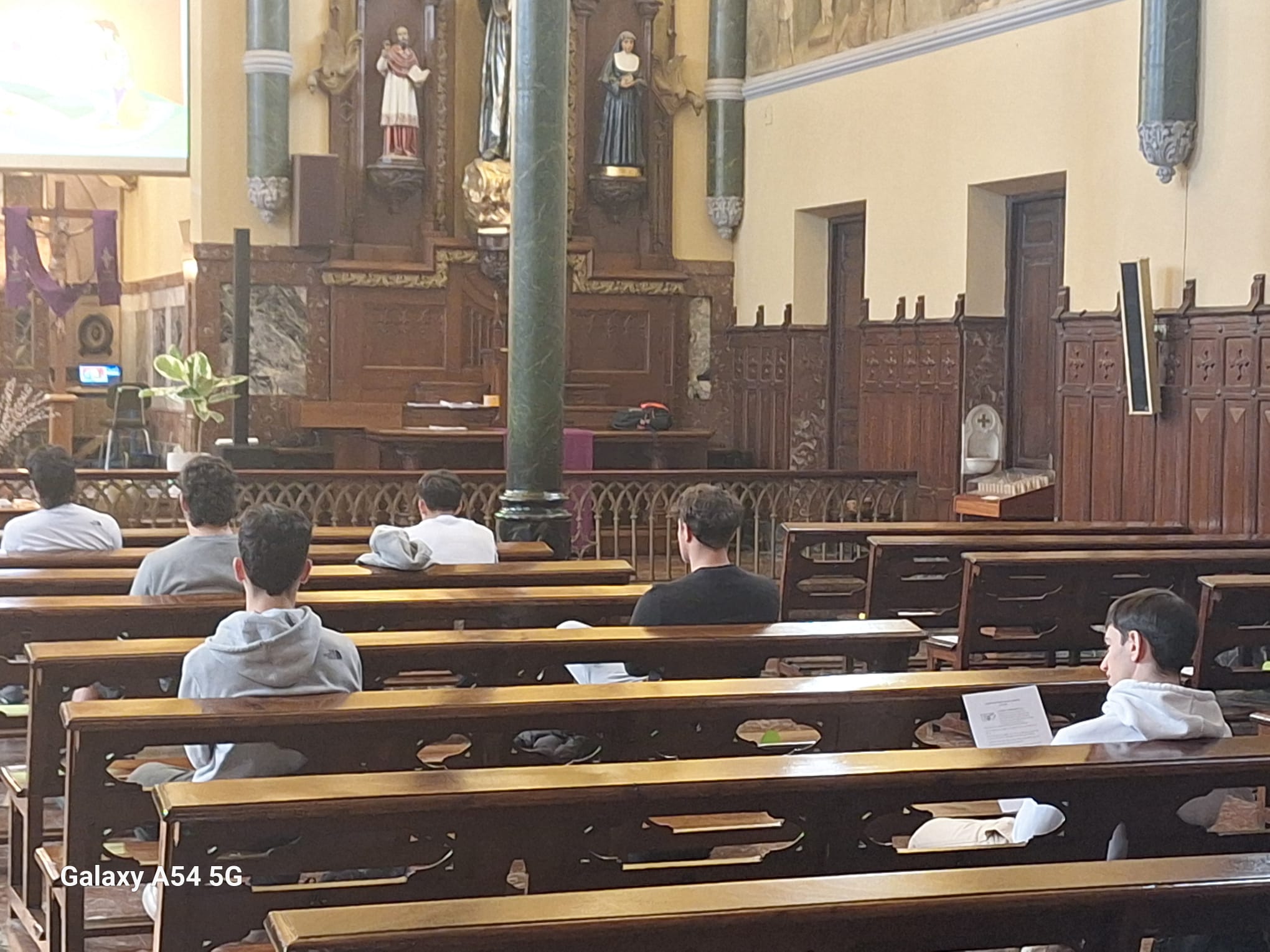 Azkeneko asteetan ikasleek parte hartu dute aitortzetan. Aste Santua hurbiltzen ari denez, ikasleei otoitz une berezia eskaini diegu. Ospakizun horretan Jainkoaren barkamena jaso dute eta egindako otoitzak eta isiltasunak lagundu diete barnetik azterketa sakona egiteko.