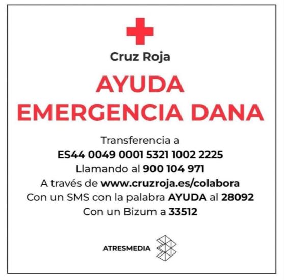 7. Os informamos también de la posibilidad de colaborar directamente en tres opciones de donación económica que han puesto en marcha sus campañas de ayuda: Cáritas, Banco de Alimentos y Cruz Roja.