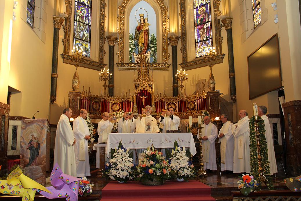 Con un llenazo hasta la bandera, la eucaristía de las 19:30 la presidió Don Félix Urra, le acompañaban en el altar D. Arcadio Cuadrado y D. José Muñoz que celebraban sus 50 años de sacerdocio, además de recordar que estamos celebrando los 50 años de la fundación de nuestra inspectoría. El coro solemnizó la celebración con sus cantos.
