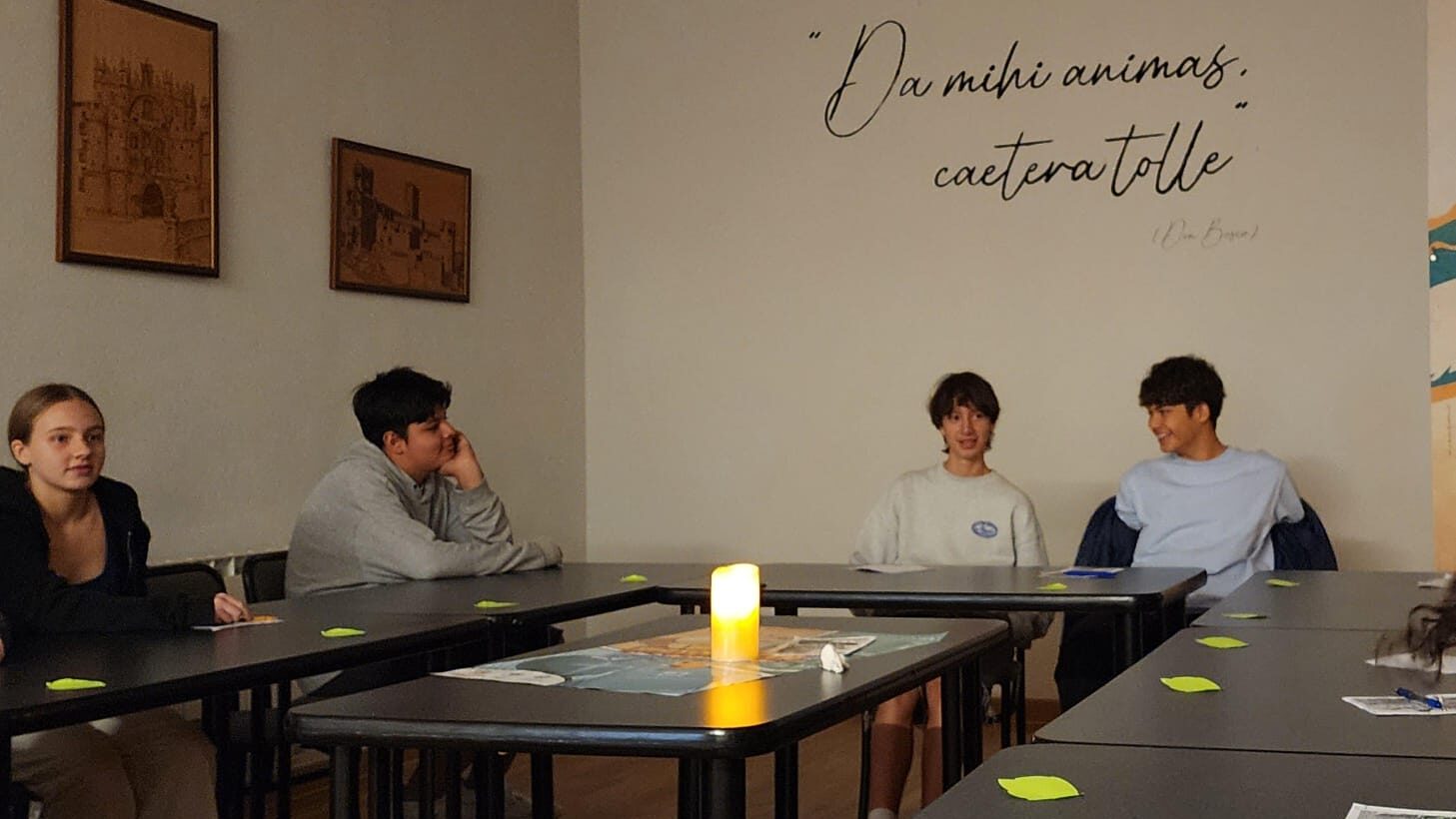 Por delante toda una mañana para poder convivir y disfrutar con los compañeros y profesores, y para trabajar en grupo y personalmente los compromisos a tomar durante este curso 2025-26. A lo largo de la mañana se trabajó la campaña pastoral “Protagonistas de la historia” a través de variados talleres que llevaron a la reflexión por medio de la música, dibujo, oración, juego, vídeo…