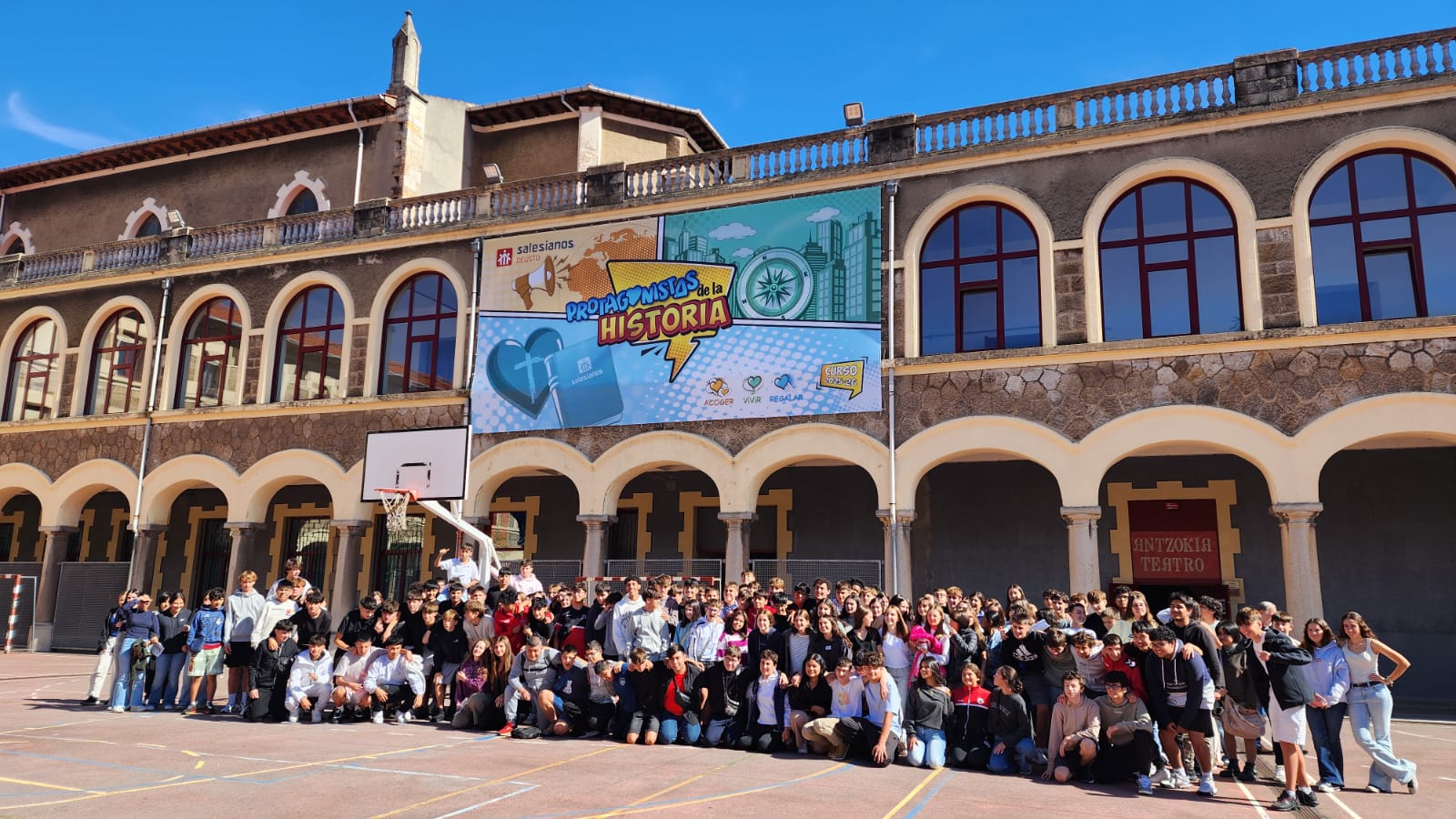 Azkeneko urteetan bezala, ekimen hau gure ikastetxean gauzatu genuen. Goiz osoa eman genuen ikasle eta irakasleok hobeto eta gehiago elkar ezagutzeko eta kurtsorako konpromisoak, pertsonal eta taldekoak, hartzeko. Goizean zehar pastoral kanpaina (“Historiaren protagonistak”) landu genuen dinamika desberdinen bidez. Musikak, otoitzak, irudiak… hausnarketa egitera eraman gintuzten.