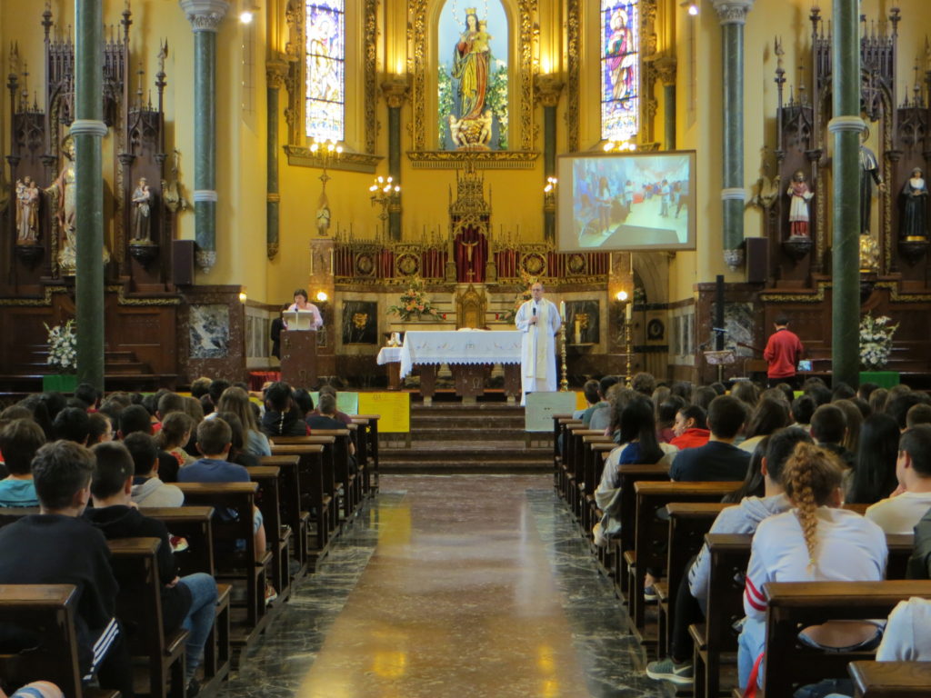 El pasado viernes, 15 de junio, pusimos el broche final al curso con una Eucaristía en la que participaron todos los alumnos y profesores de Secundaria. Una hora antes se habían reunido los profesores con los alumnos para realizar una revisión conjunta de las principales acciones pastorales llevadas a cabo a lo largo del curso, a través de las cuales buscamos que nuestros alumnos crezcan en humanidad y en un sentido cristiano de la vida: buenos días, celebraciones, convivencias, charlas, fiestas, patio, cercanía…