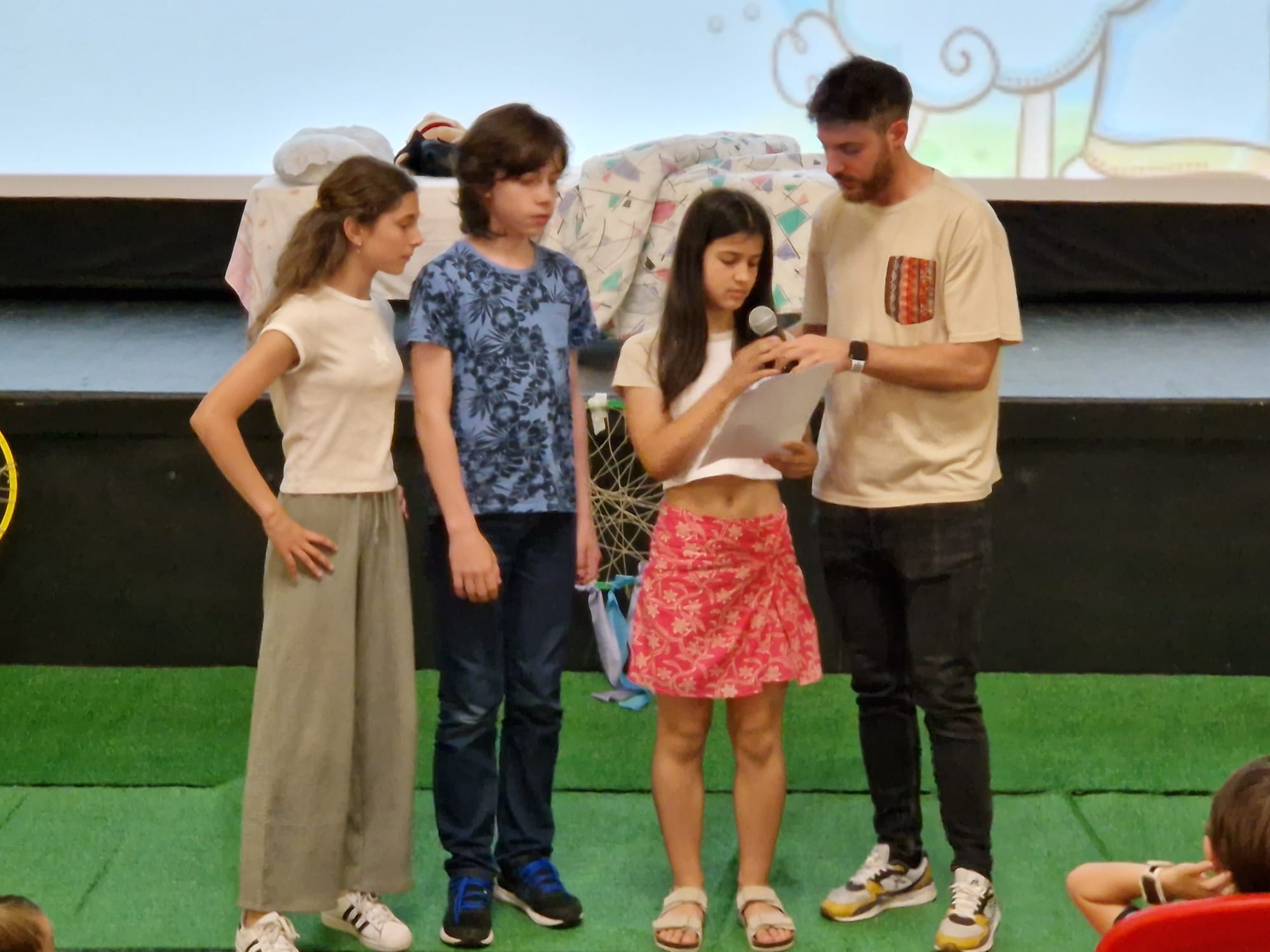 Además, ese tiempo también se utilizó para preparar la celebración, que fue muy participativa, ya que cada curso se encargó de las peticiones, el momento del perdón, las ofrendas y la acción de gracias. También tuvimos tiempo para ver un teatro en el que unos personajes nos recordaron lo que había sido el curso desde la campaña «Un sueño para ti». Dios nos sueña cada día mejores y nos acompaña siempre en nuestro camino.