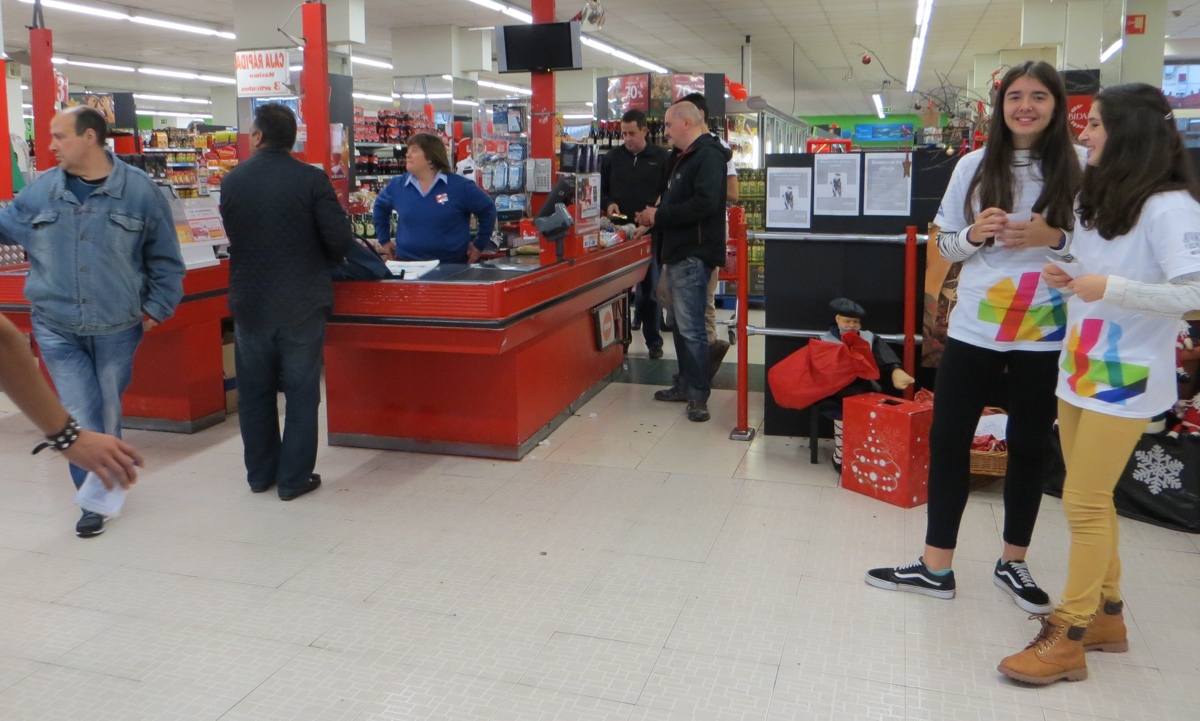Por otro lado, todo el colegio ha estado también volcado a lo largo de este mes en la campaña de recogida de alimentos, trayéndolos o aportando dinero. Además, el 12 de diciembre un grupo de alumnos y profesores voluntarios estuvieron toda la tarde en varios supermercados (Eroski, Lidl, Simply) sensibilizando a la gente y recogiendo alimentos. En total hemos conseguido completar cinco palés, con unos 3.000 kilos de alimentos, que en breve serán enviados a Pamplona para rellenar el contenedor que mandaremos en enero a Benín, al proyecto «Niños de la calle».