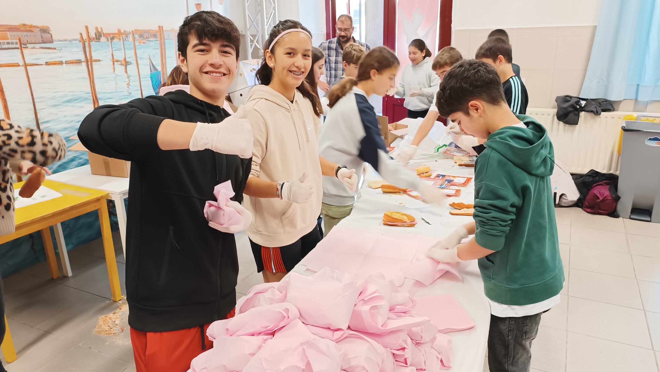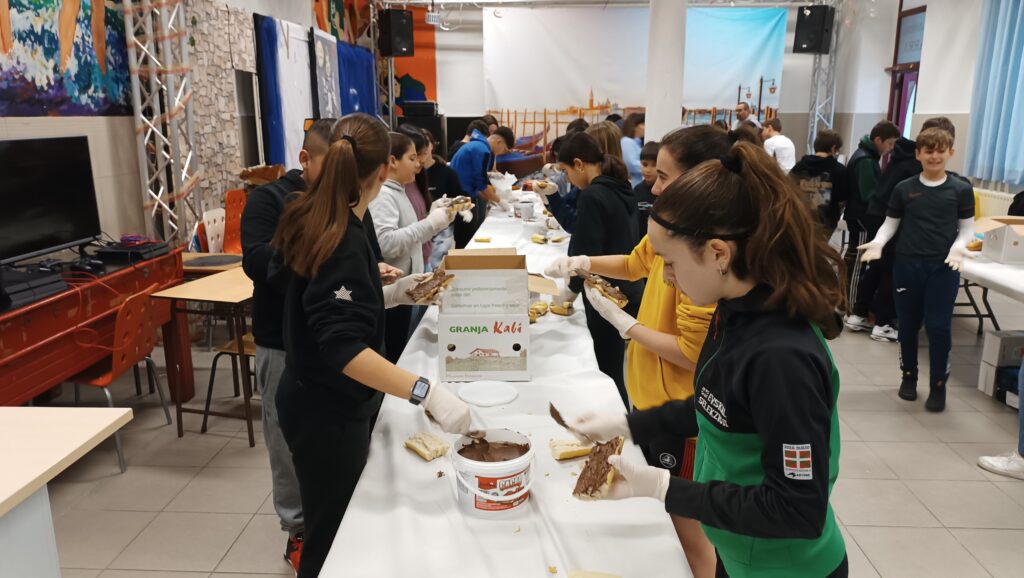 Y a lo largo de la mañana también hemos tenido la oportunidad de tomar el bocadillo solidario, gracias a la colaboración de la empresa Ausolan y de un nutrido grupo de voluntarios de 1º ESO y profesores que han colaborado en la preparación de más de 900 bocadillos, que se han convertido en ese mismo número de euros que irán destinados a los proyectos anteriormente citados.