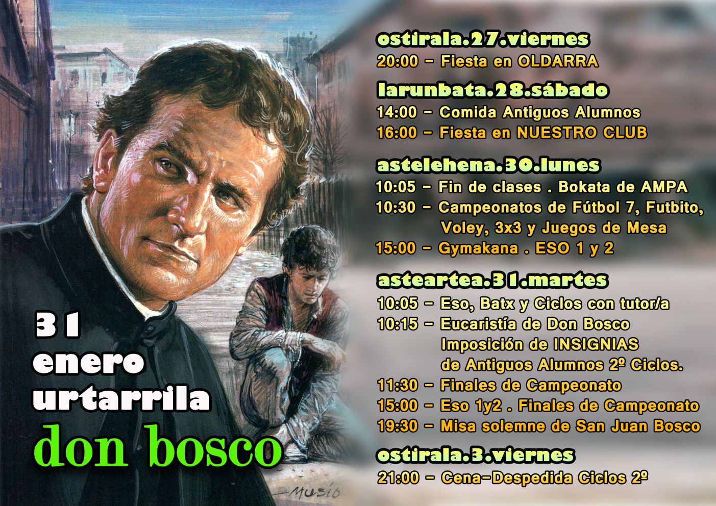 Este martes 31 de enero la iglesia recuerda a San Juan Bosco, fundador de la Congregación Salesiana. Con este motivo, a lo largo de estos días se están desarrollando todo tipo de actividades educativas, religiosas, deportivas en los centros salesianos para recordar al santo de los jóvenes.