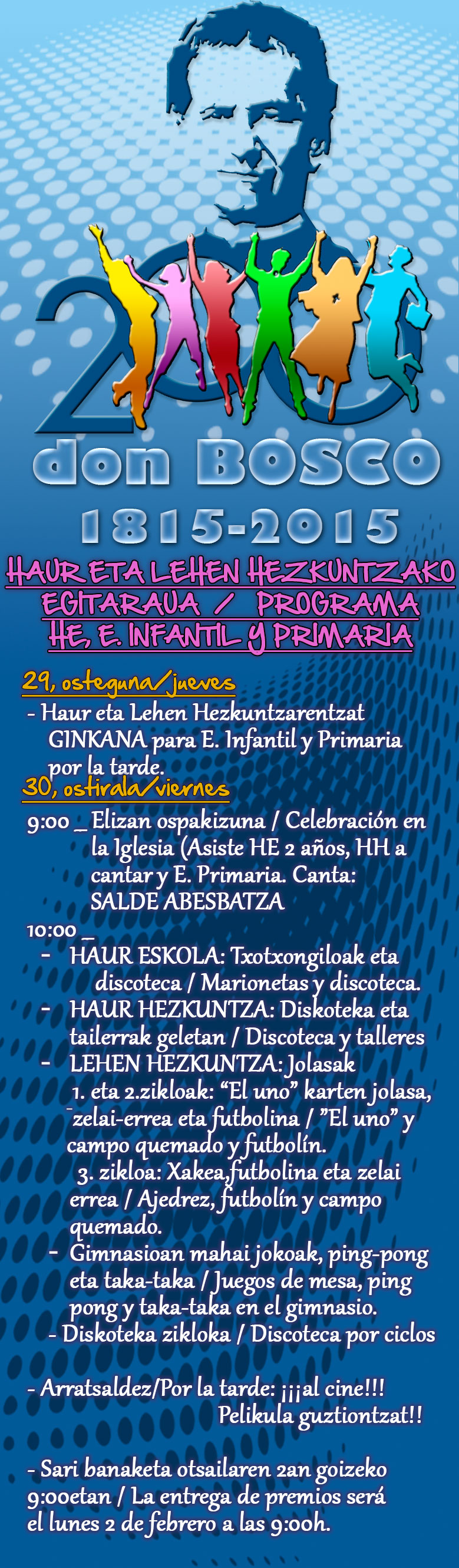 Comenzamos las actividades de la fiesta de don Bosco. Presentamos los dos programas de etapas de pequeños y mayores.