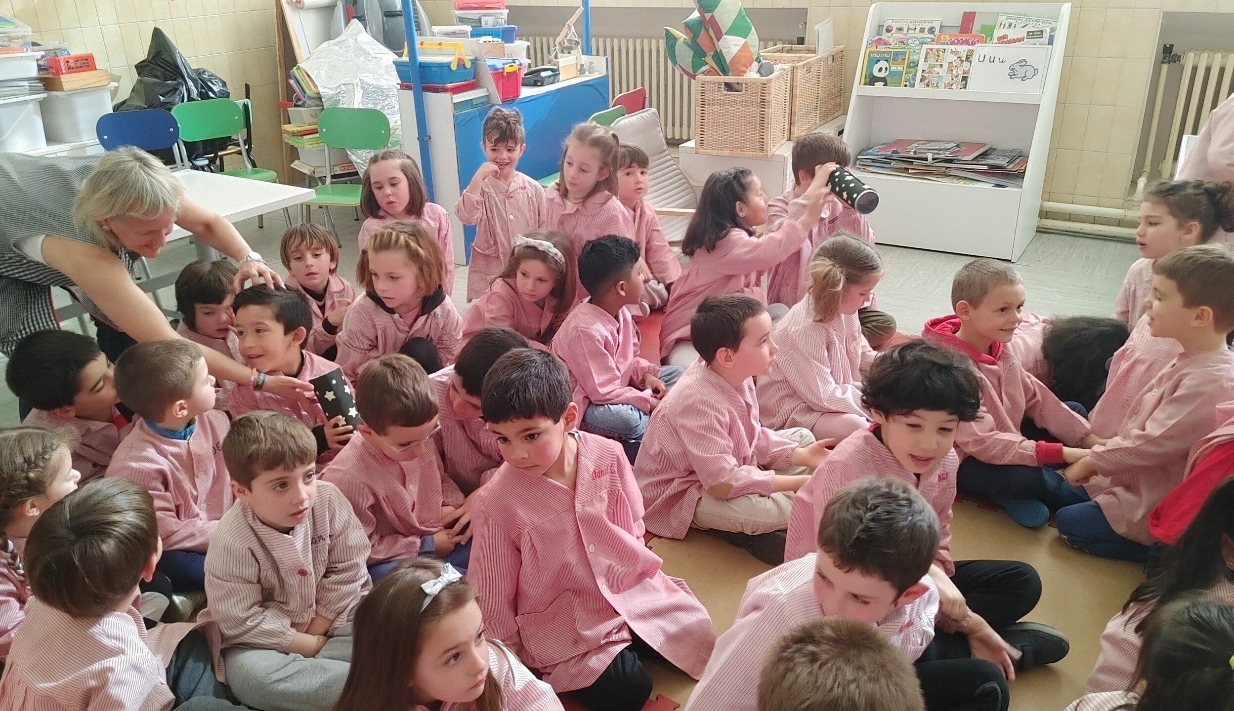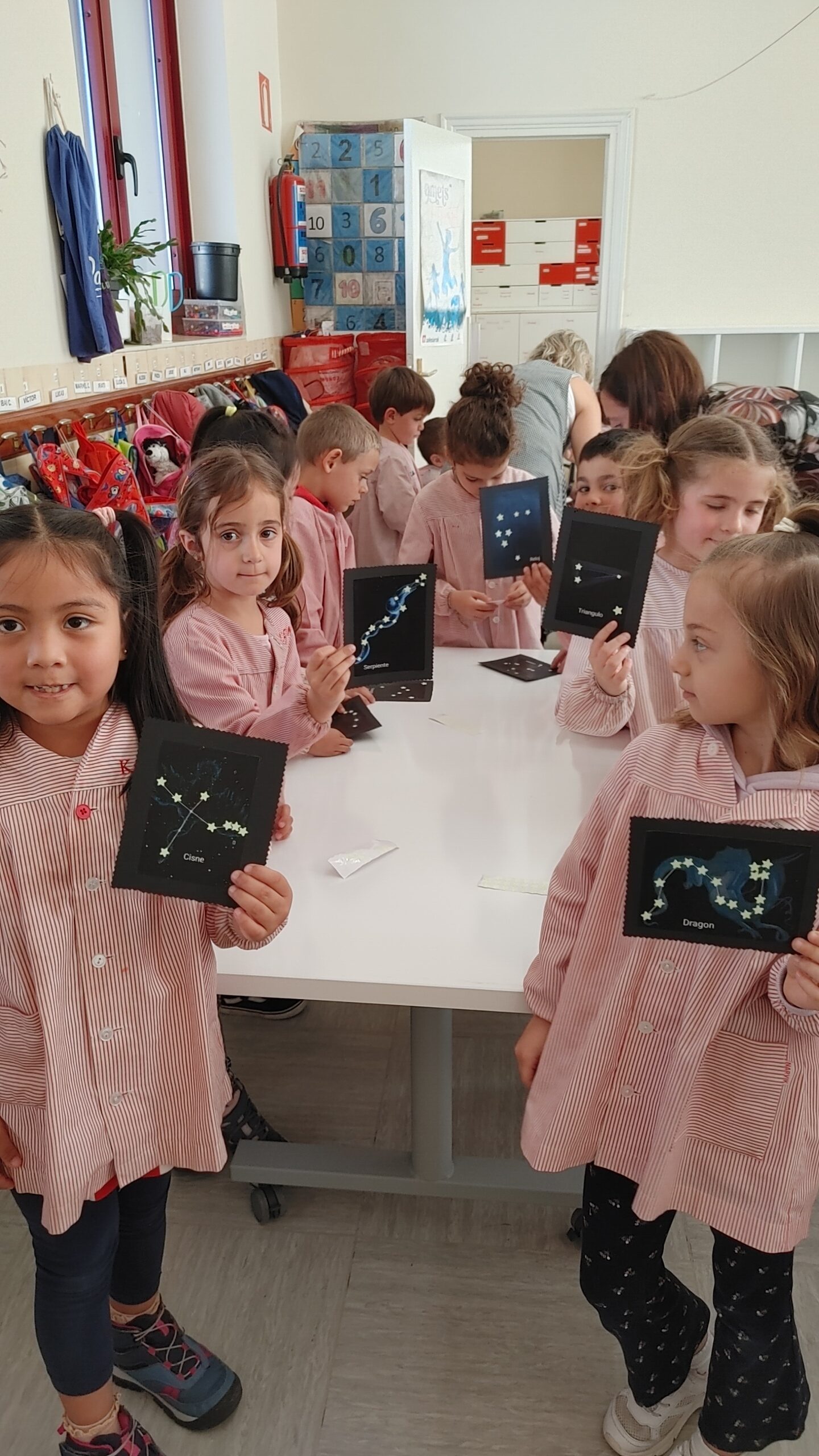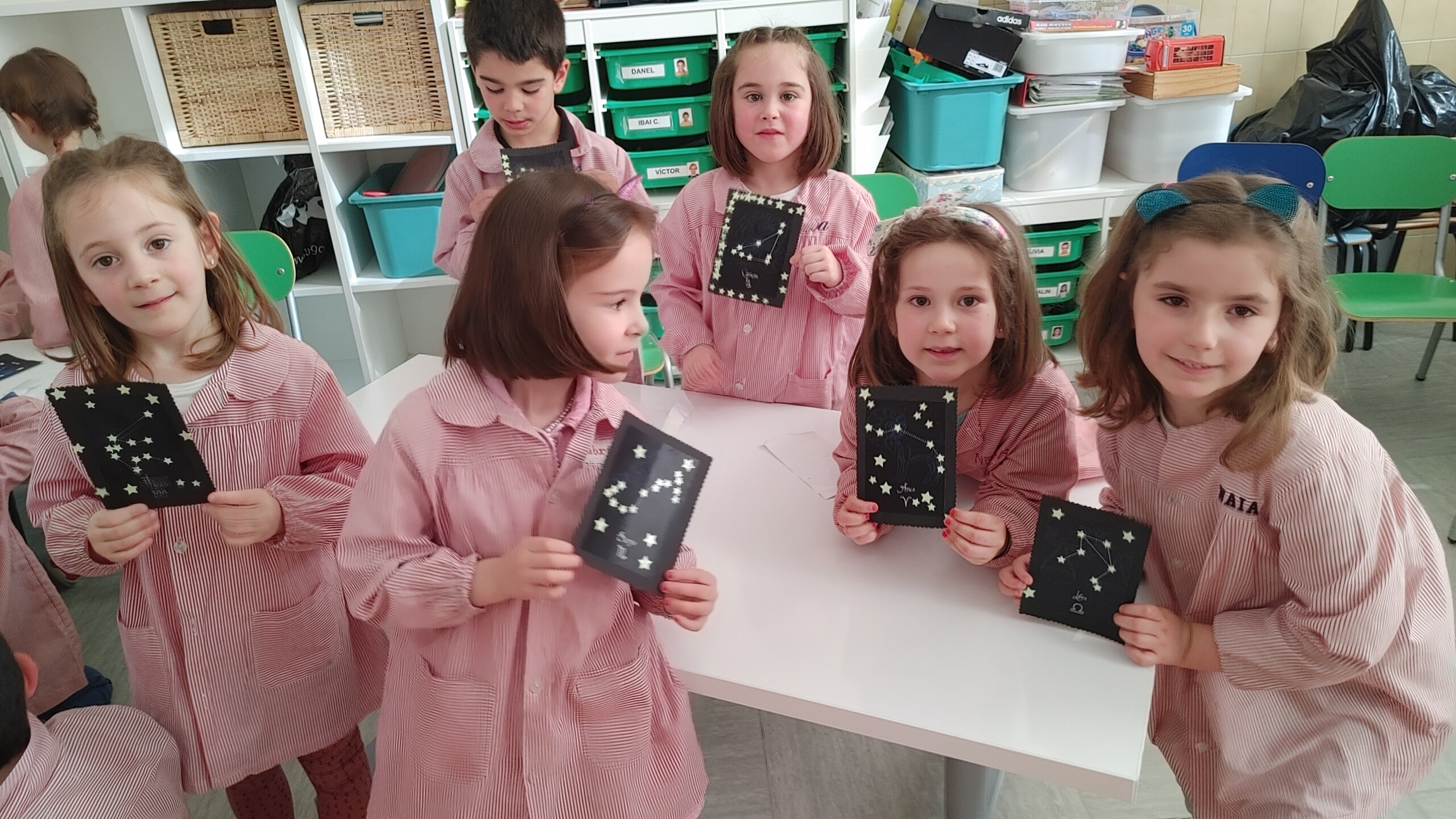 Gaur, 5 urteko ikasleen amatxu batzuk etorri zaizkigu, konstelazioak azaltzeko eta haur guztiekin horri buruzko jarduera bat egiteko, espazioko gure proiektuaren barruan.