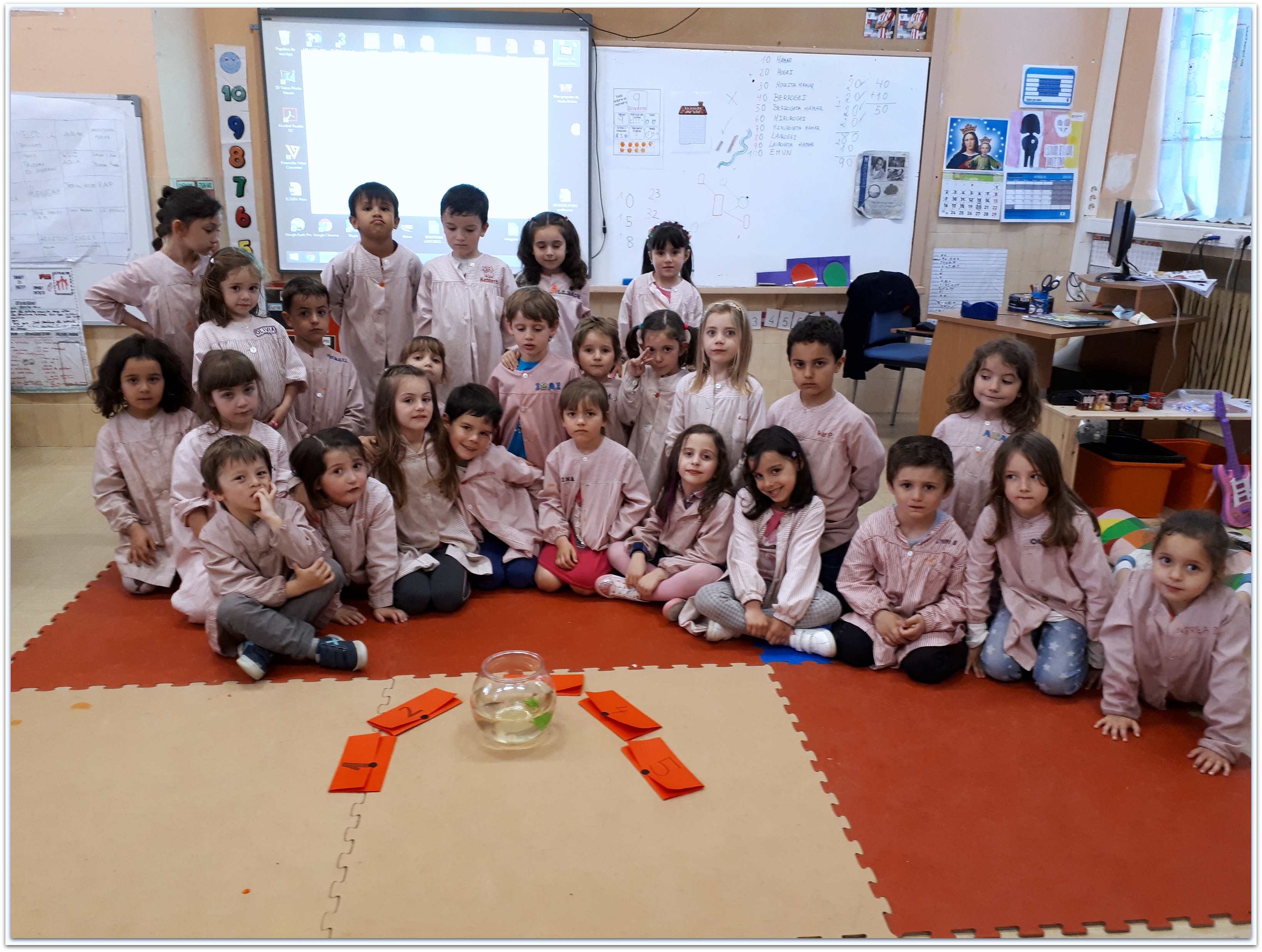 Gutun azal bat topatu genuen gure geletan (kolore desberdinekoak). Berehala konturatu ginen zein zen gure betebeharra. Pista irakurri, asmatu eta beste baten bila joan…..»GINKANA BAT». Asken pista behin asmatuta sorpresa etorri jaso genuen, «ARRAINAK». Benetan dibertigarri eta polita izan zela proiektu honen hasiera…… Hona hemen irudi batzuk!!!!