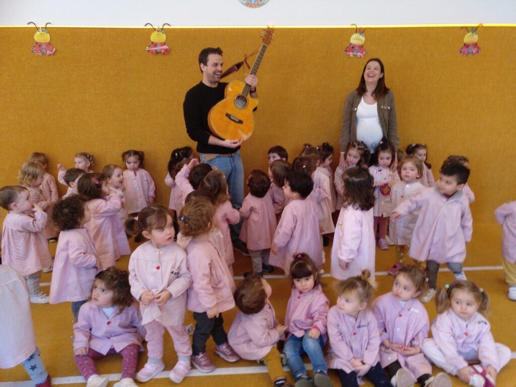 Otsailaren 20an, ostegunean, gitarrak nola jotzen duen erakutsi ziguten 2 urteko klasean, eta instrumentu horren soinuak lagunduta abestiren bat abestu genuen denok elkarrekin. Gainera, pixka bat ukitzen utzi ziguten. Oso dibertigarria izan zen.