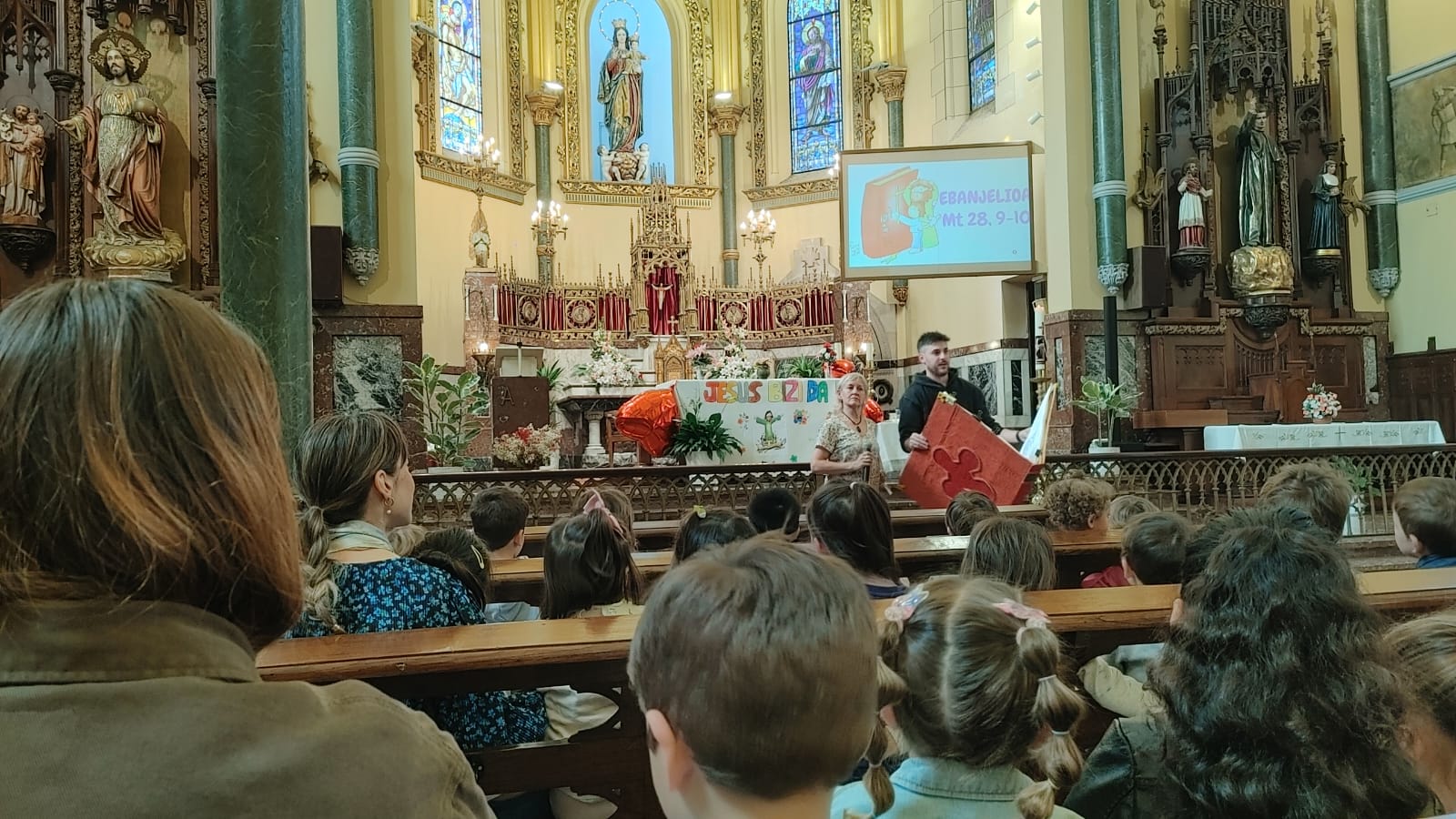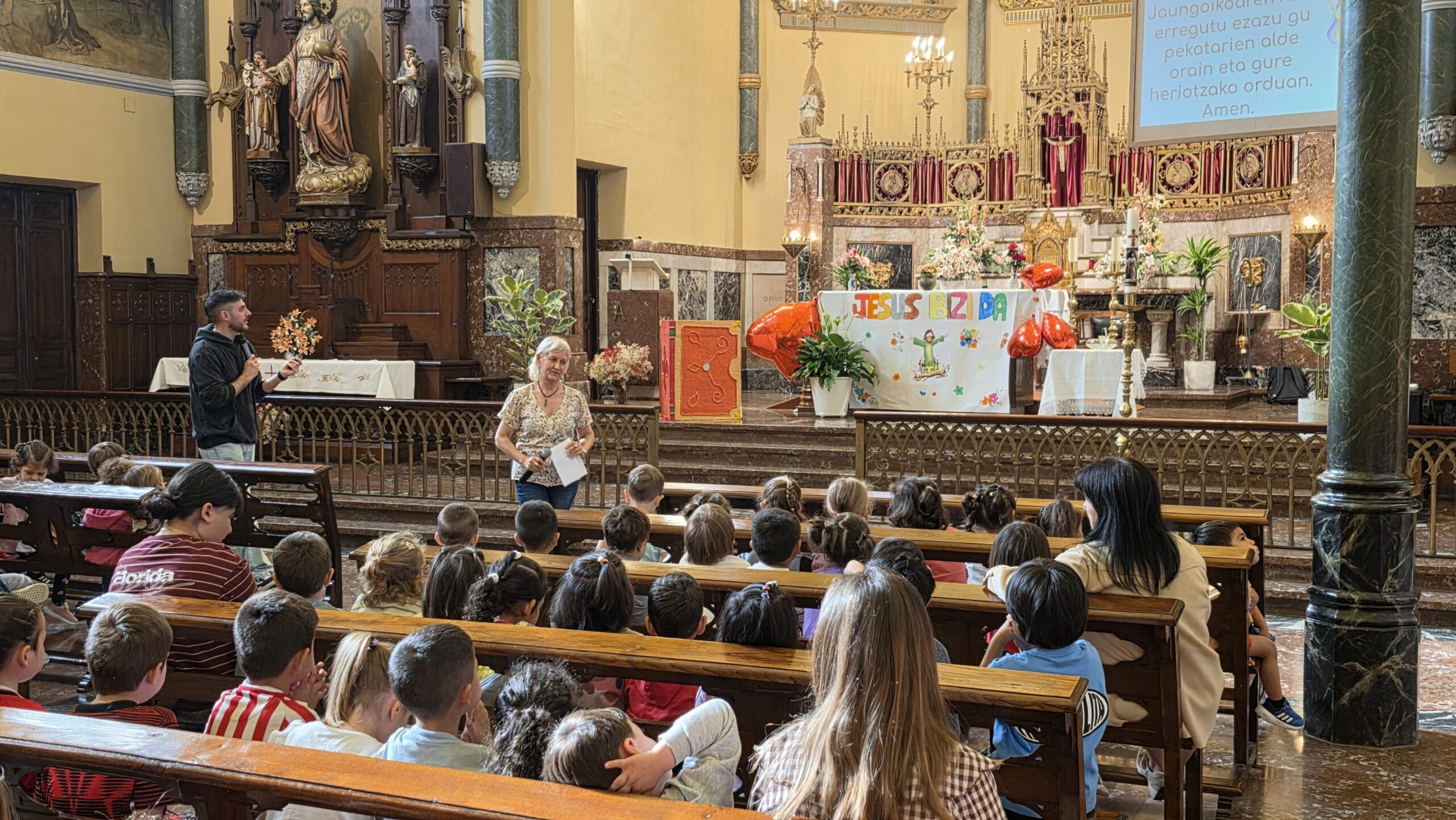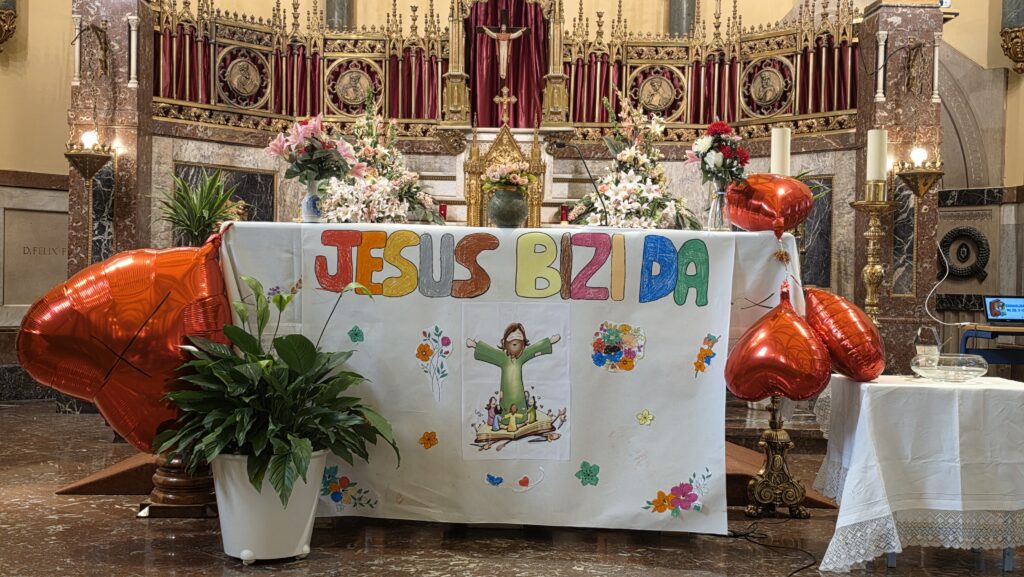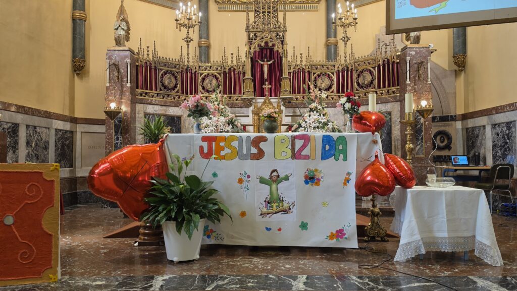 Jesus berpiztu egin da eta betiko bizi da gure bihotzetan. Poztasun emozio hori dela eta, Haur eta Lehen Hezkuntzako ikasleak asteazkenean, hilak 22, bildu ginen elizan, bizitza ospatzeko.