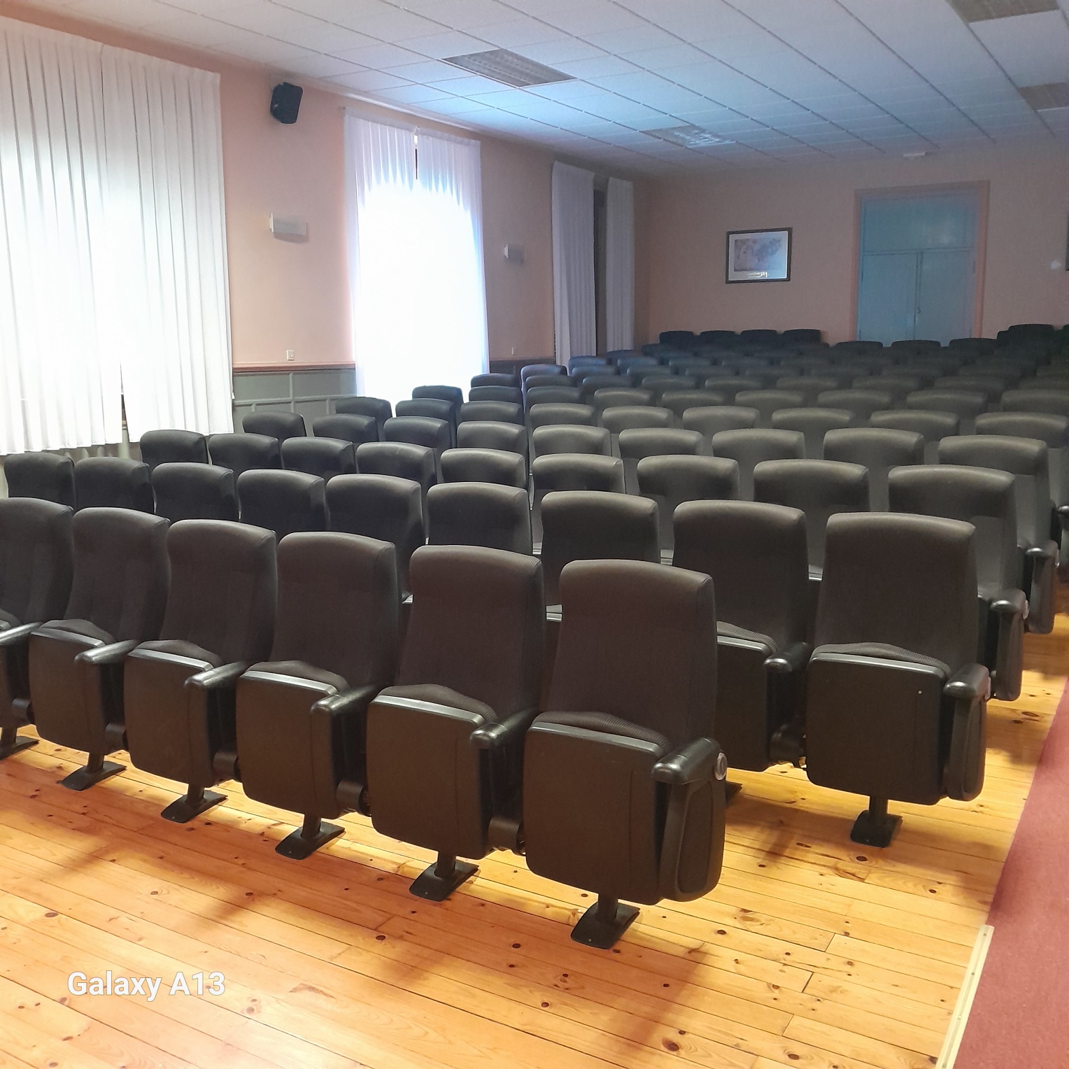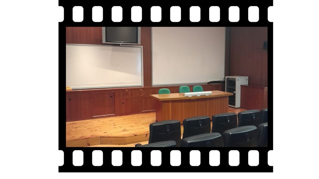 La sala de audiovisión de Salesianos Deusto es un espacio equipado para realizar charlas, conferencias y presentaciones audiovisuales. Tiene una capacidad aproximada para 111 personas, distribuidas en butacas cómodas y organizadas en filas con buena visibilidad hacia el frente.