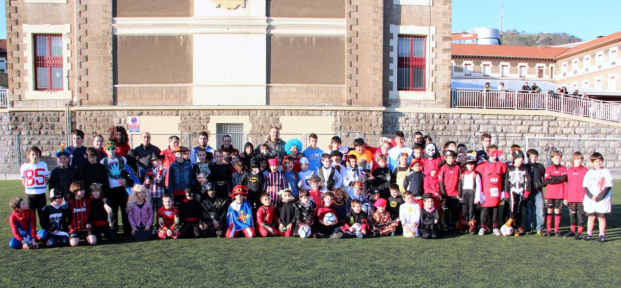 Entre jugadores y entrenadores nos juntamos casi 100 personas en el campo de futbol, con la peculiaridad de que todos los jugadores vinieron disfrazados.